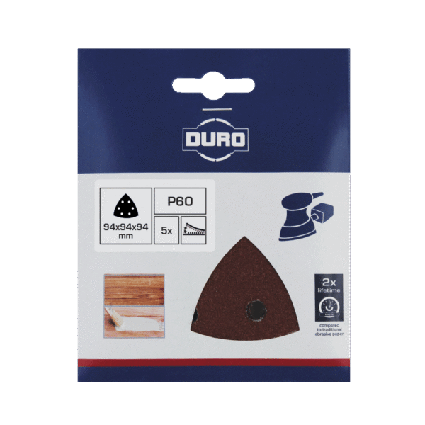 Hoge kwaliteit, aluminium oxide, schuurpapier met velcro rug voor gebruik op deltaschuurmachines. Ideaal voor het schuren van hout en geschilderde oppervlakken. Kwaliteitsvolle korrel, gaat tot 2x langer mee dan standaard schuurpapier.