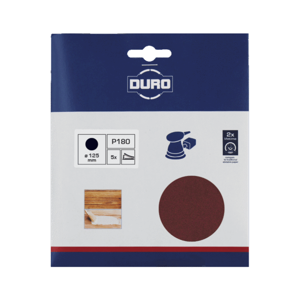 Hoge kwaliteit, aluminium oxide, schuurpapier met velcro rug voor gebruik op excentrische schuurmachines. Ideaal voor het schuren van hout en geschilderde oppervlakken. Kwaliteitsvolle korrel, gaat tot 2x langer mee dan standaard schuurpapier.
